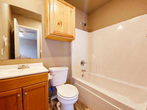 - Three spacious bedrooms and two full bathrooms